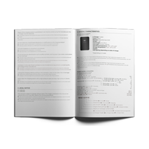 - Interface de charge : IEC 62196-2, Type 2 câble attaché (5m ou 10m)